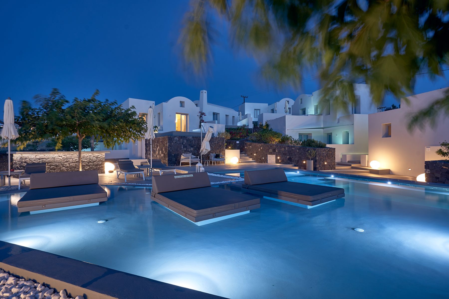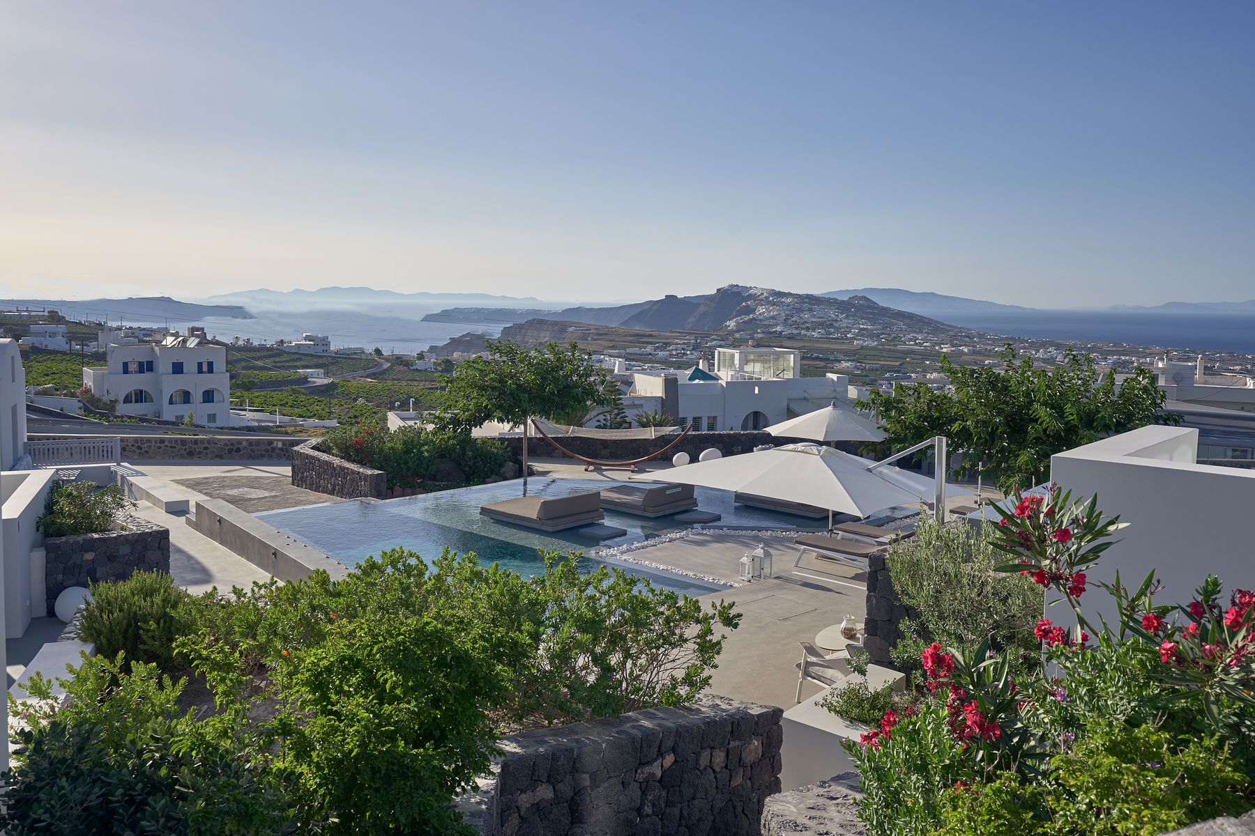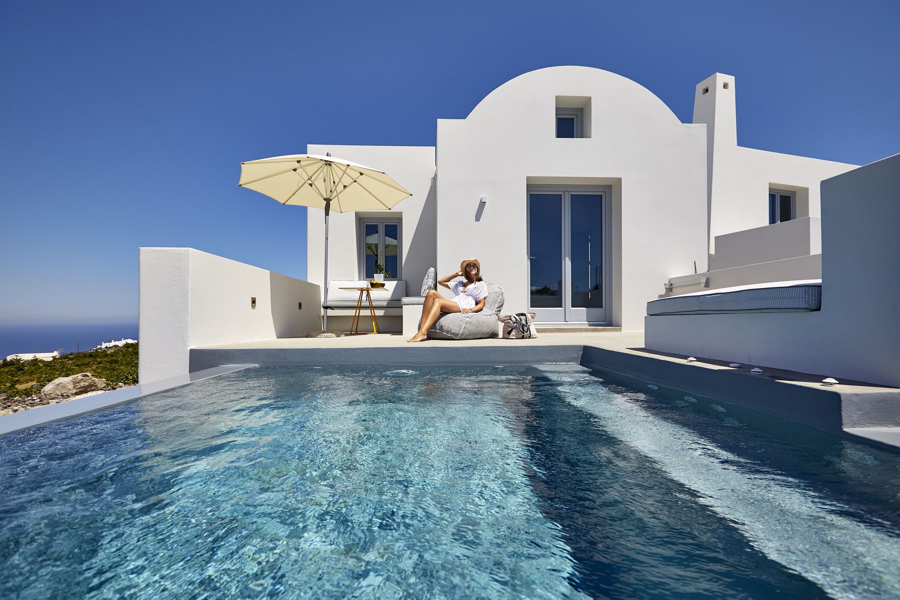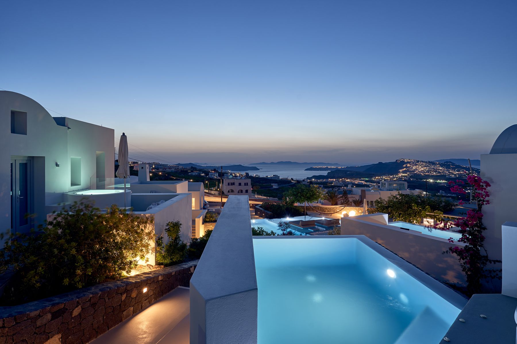 The brand new Nova Santorini Luxury Suites Hotel in Pyrgos village is a complex of 7 sophisticated suites with private pools or hot tubs and a main swimming pool, designed with passion and care in order to provide an exquisite holiday experience. The greatest attention to detail, utter respect to Santorini’s unique landscape and the fresh, hospitable attitude of its people are at the foundation of Nova Santorini’s accommodation.